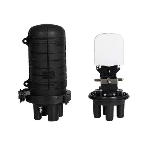 Die vertikale Verbindungsdose (Kuppeldose) ist ein Gerät, das für den Mehrweg-Abzweiganschluss geeignet ist. Es hat normalerweise eine kuppelförmige oder halbkugelförmige Struktur und einen großen Innenraum, der die Abzweigverbindung mehrerer optischer Kabel aufnehmen kann. Seine Hauptstruktur umfasst:
